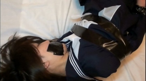 黒いテープで身体を拘束され、口も塞がれて言葉を発せられない女の子。ぐるぐる巻きにされたセーラー服を脱がしていくと、破られたストッキングと競泳水着が・・。口を押さえ込まれながら言葉にならないうめき声をあげる彼女に興奮を覚えていくのだった。